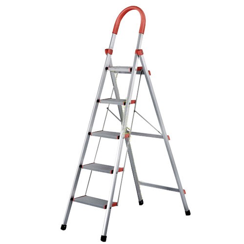 - Thang nhôm ghế inox 5 bậc Kagami WK-SS205 có tay vịn chắc chắn, chống trượt.