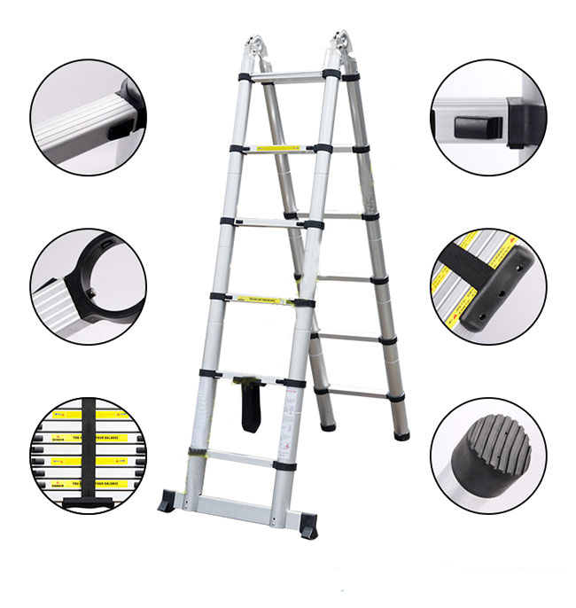 - Ở mỗi đầu chân thang được bọc một lớp đệm cao su cao cấp, không trơn trượt và trầy xướt bề mặt tiếp xúc. Tải trọng tối đa của thang là 120kg dễ dàng sử dụng cho nhiều mục đích khác nhau.